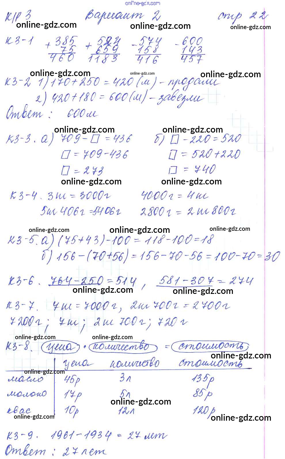 Готовые домашние задания по Математике за 3 класс Контрольные и диагностические работы Башмаков, Нефедова Планета знаний 2018 - Контрольная работа №3 вариант 2