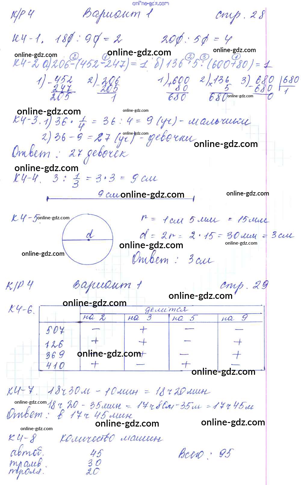 Готовые домашние задания по Математике за 3 класс Контрольные и диагностические работы Башмаков, Нефедова Планета знаний 2018 - Контрольная работа №4 вариант 1