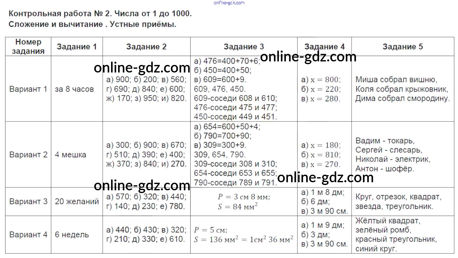 Готовые домашние задания по Математике за 3 класс Контрольно-измерительные материалы (КИМ) Ситникова 2017 - Контрольные работы 2