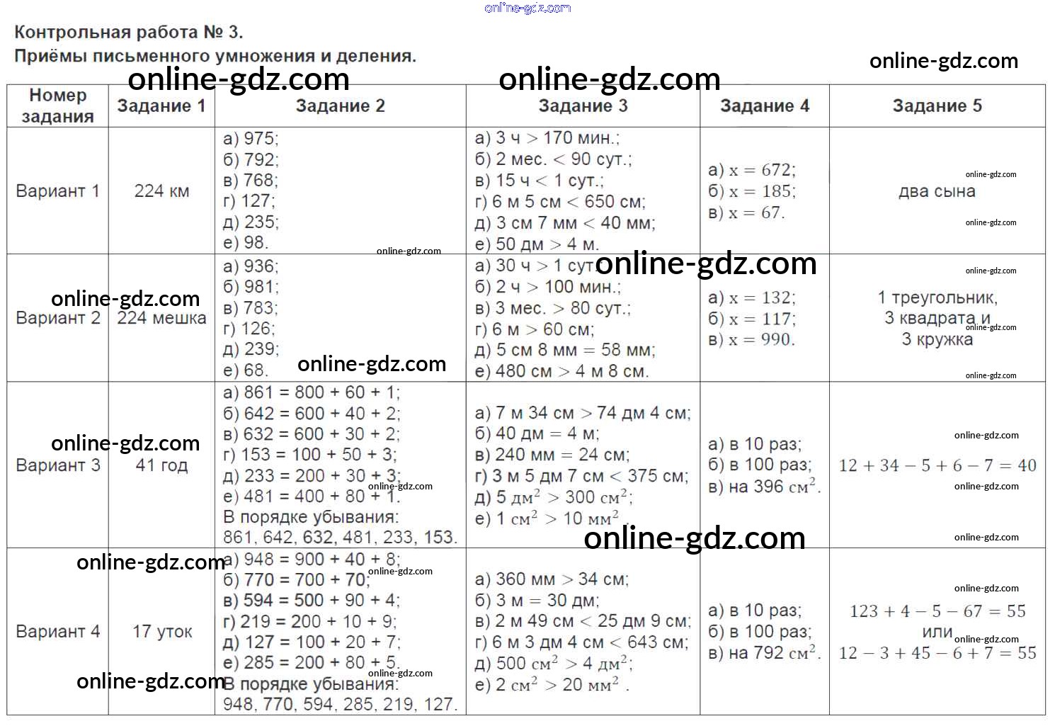 Готовые домашние задания по Математике за 3 класс Контрольно-измерительные материалы (КИМ) Ситникова 2017 - Контрольные работы 3