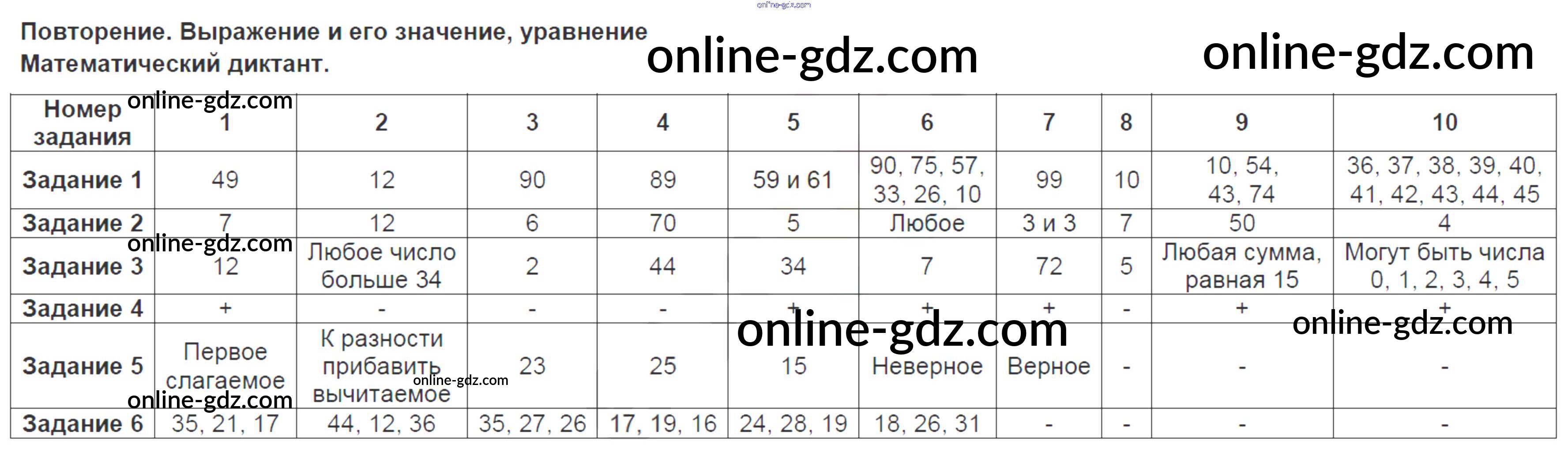 Готовые домашние задания по Математике за 3 класс Контрольно-измерительные материалы (КИМ) Ситникова 2017 - Математические диктанты 1