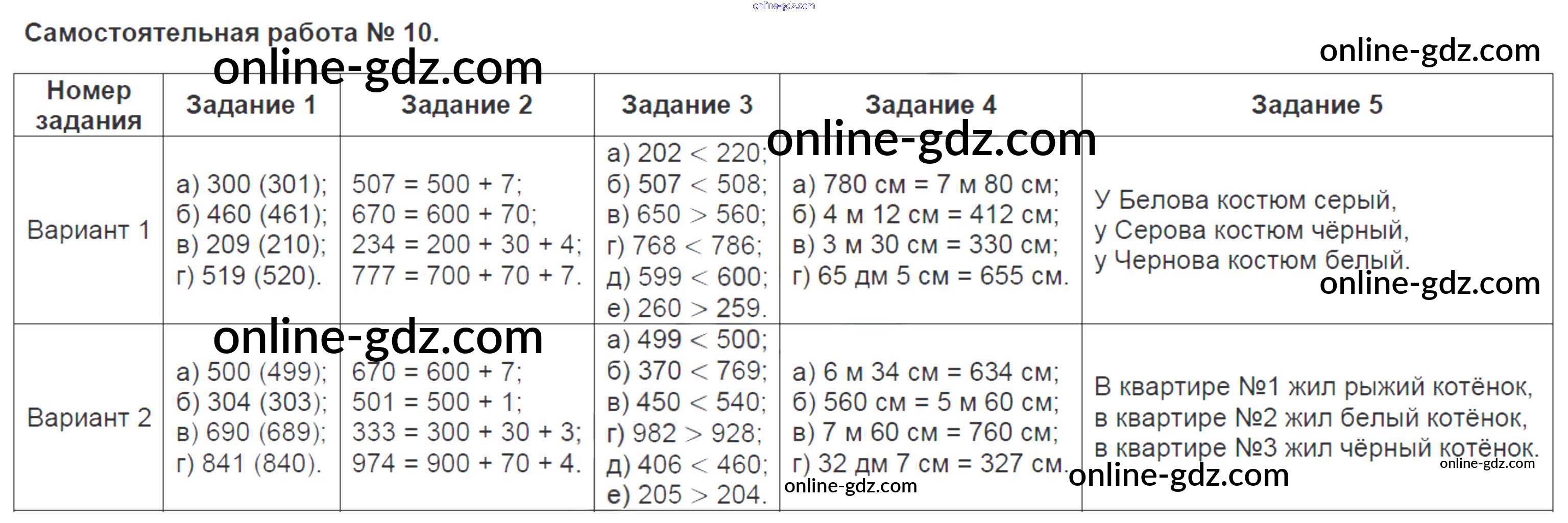 Готовые домашние задания по Математике за 3 класс Контрольно-измерительные материалы (КИМ) Ситникова 2017 - Самостоятельные работы 10