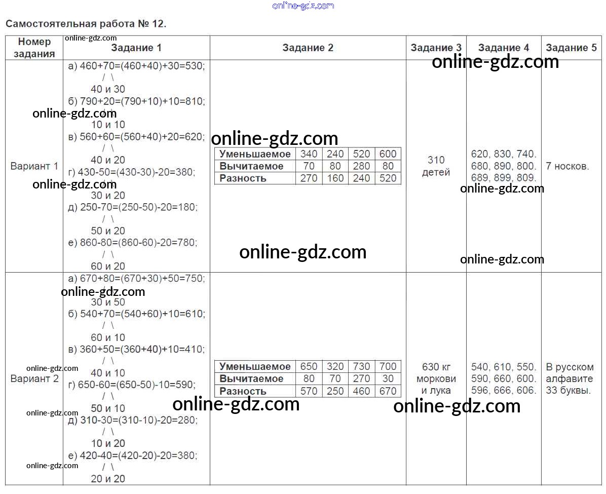Готовые домашние задания по Математике за 3 класс Контрольно-измерительные материалы (КИМ) Ситникова 2017 - Самостоятельные работы 12