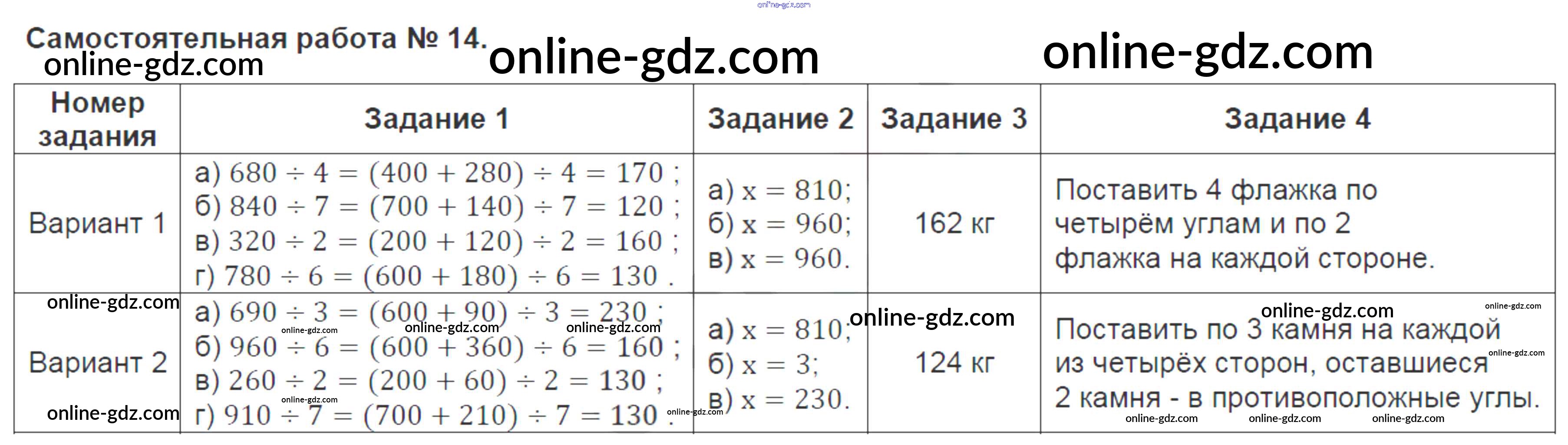 Готовые домашние задания по Математике за 3 класс Контрольно-измерительные материалы (КИМ) Ситникова 2017 - Самостоятельные работы 14