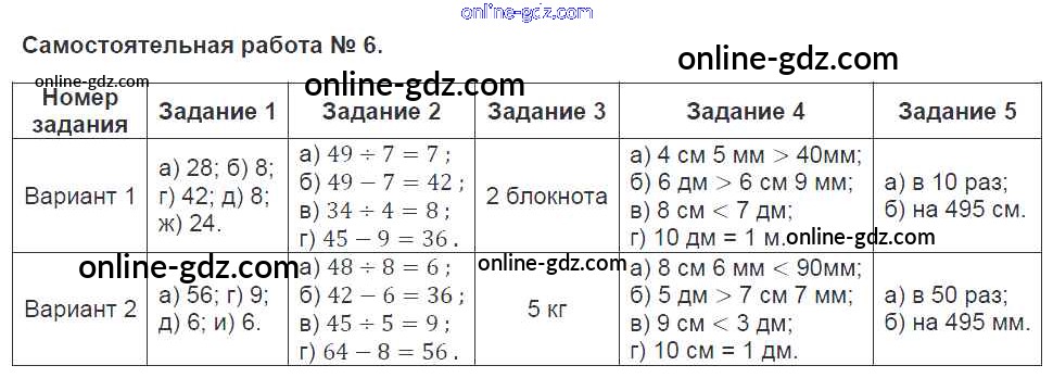 Готовые домашние задания по Математике за 3 класс Контрольно-измерительные материалы (КИМ) Ситникова 2017 - Самостоятельные работы 6