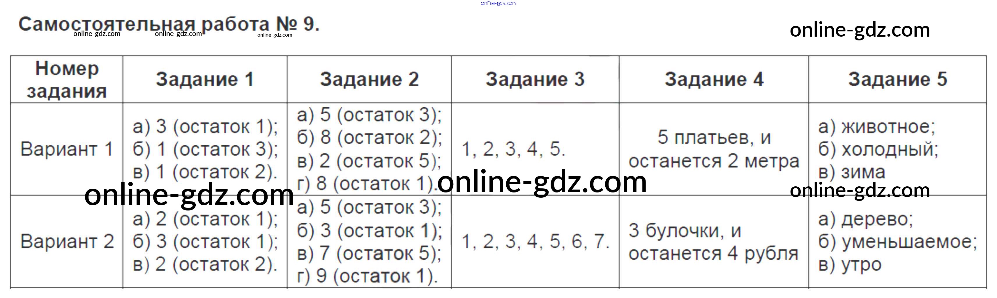 Готовые домашние задания по Математике за 3 класс Контрольно-измерительные материалы (КИМ) Ситникова 2017 - Самостоятельные работы 9