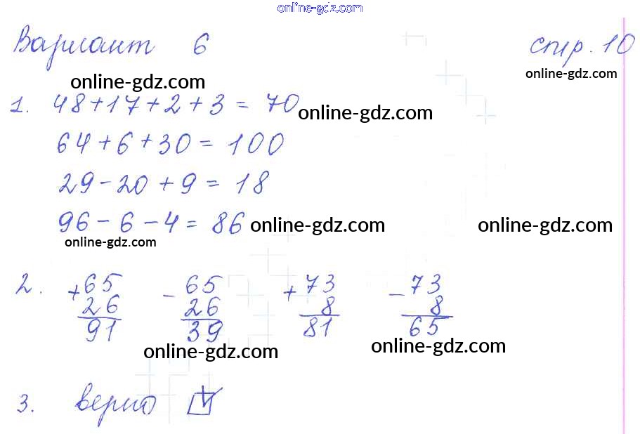 Готовые домашние задания по Математике за 3 класс Контрольные работы Рудницкая УМК 2017 - Часть 1 (страницы) 10