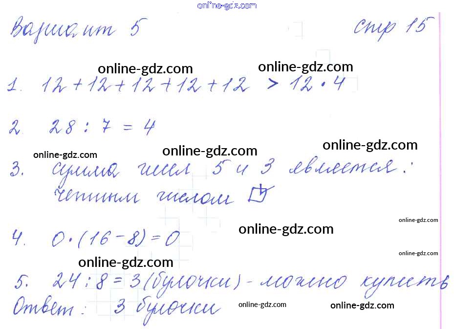 Готовые домашние задания по Математике за 3 класс Контрольные работы Рудницкая УМК 2017 - Часть 1 (страницы) 15