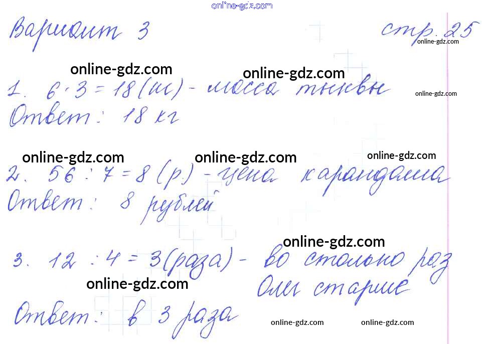 Готовые домашние задания по Математике за 3 класс Контрольные работы Рудницкая УМК 2017 - Часть 1 (страницы) 25