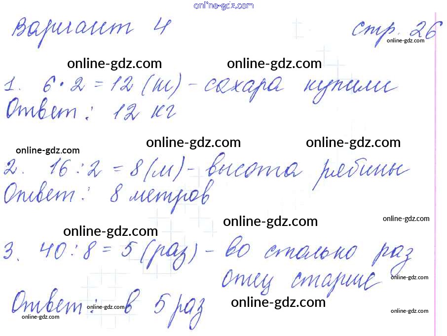 Готовые домашние задания по Математике за 3 класс Контрольные работы Рудницкая УМК 2017 - Часть 1 (страницы) 26