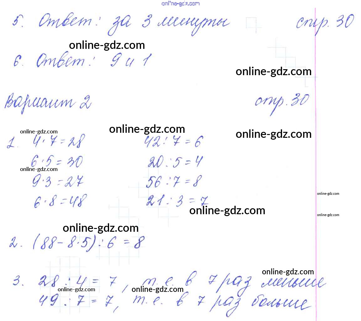Готовые домашние задания по Математике за 3 класс Контрольные работы Рудницкая УМК 2017 - Часть 1 (страницы) 30