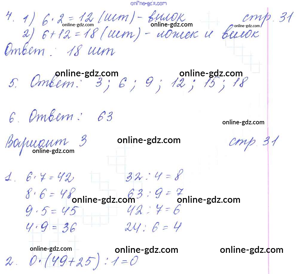 Готовые домашние задания по Математике за 3 класс Контрольные работы Рудницкая УМК 2017 - Часть 1 (страницы) 31