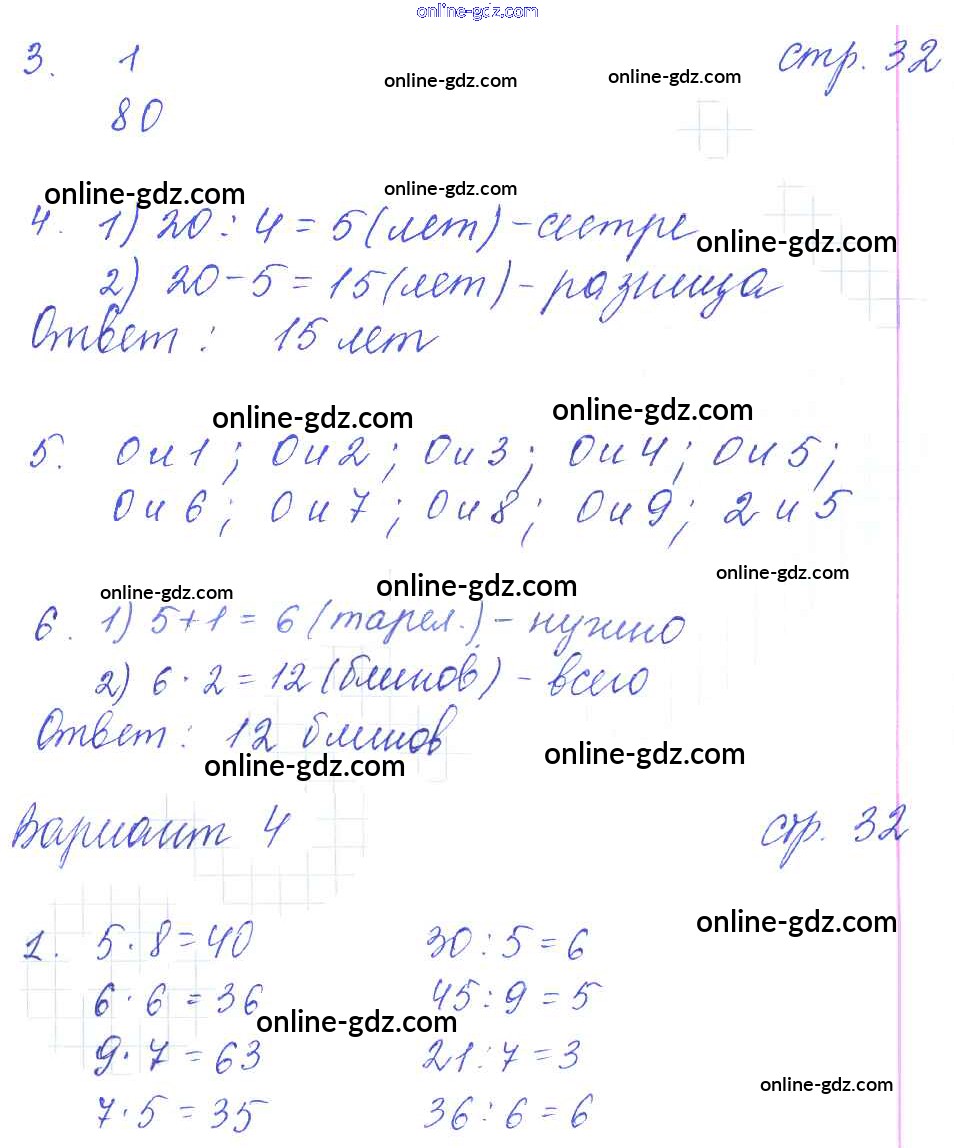 Готовые домашние задания по Математике за 3 класс Контрольные работы Рудницкая УМК 2017 - Часть 1 (страницы) 32