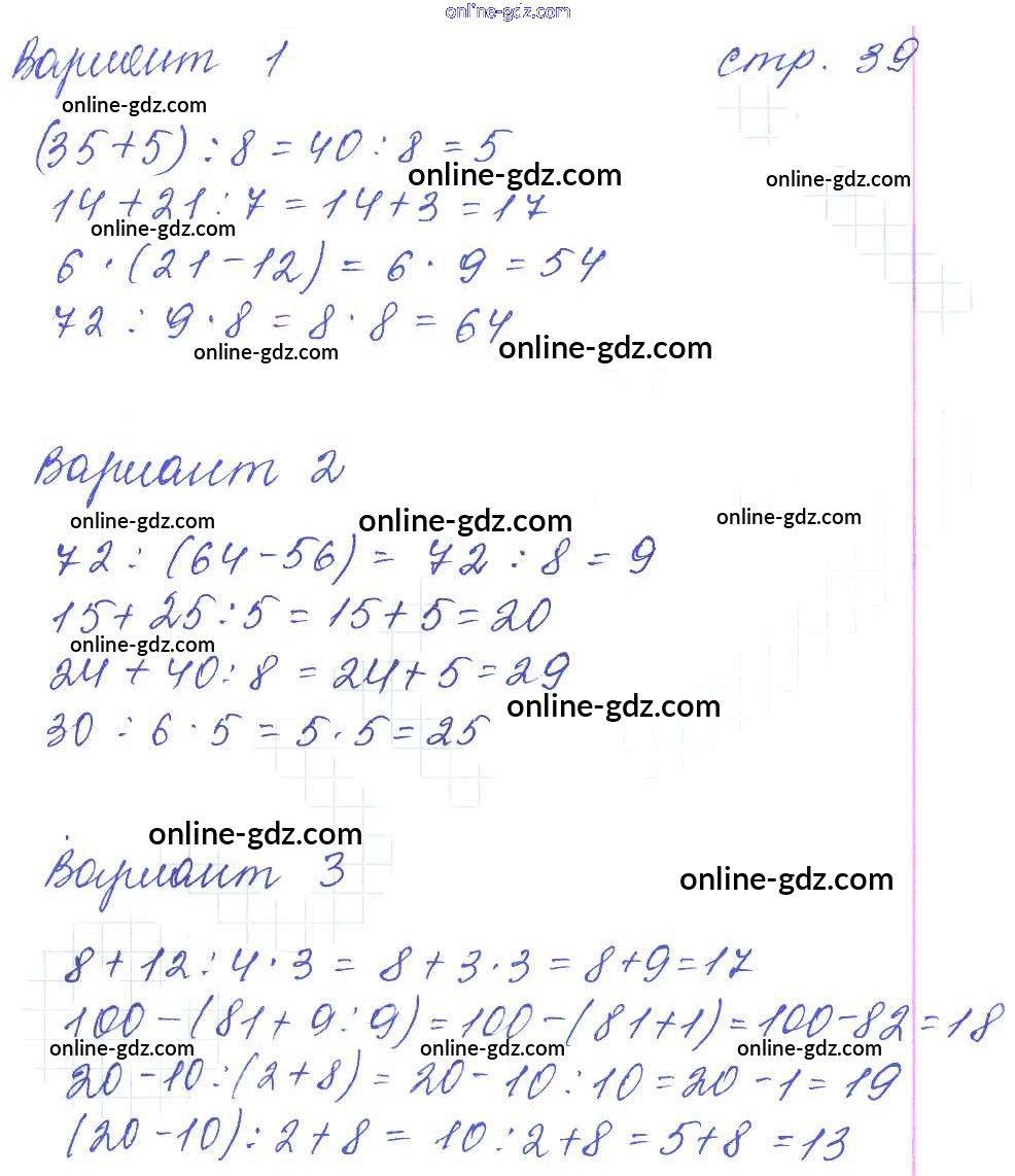 Готовые домашние задания по Математике за 3 класс Контрольные работы Рудницкая УМК 2017 - Часть 1 (страницы) 39