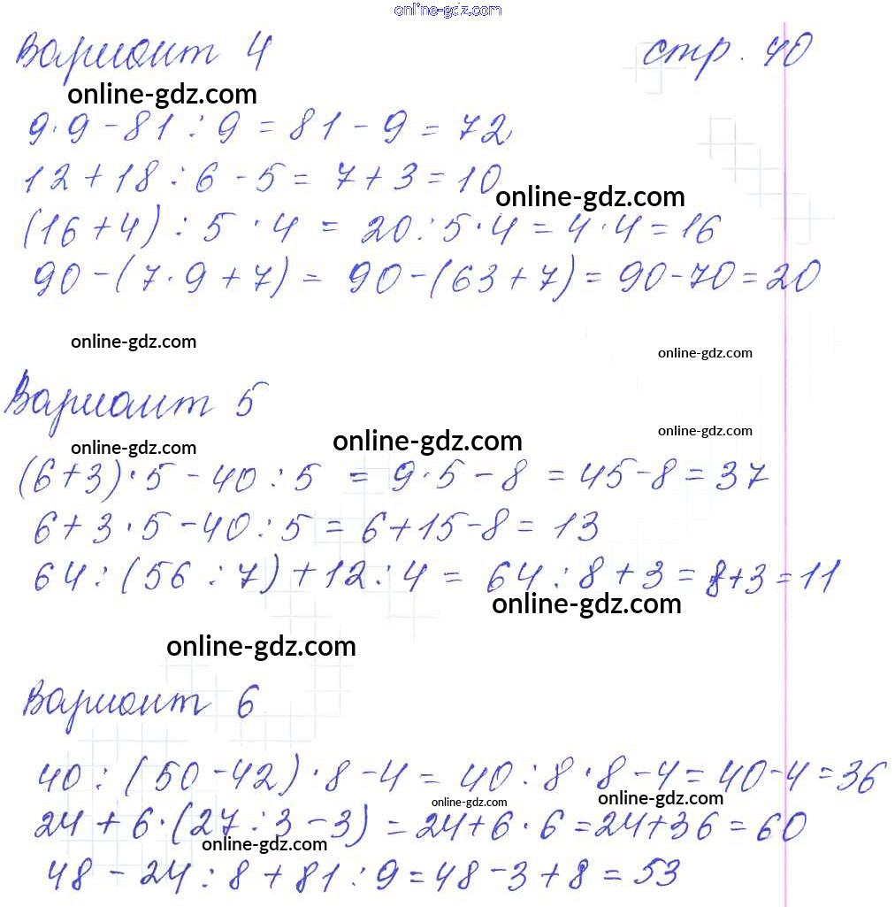 Готовые домашние задания по Математике за 3 класс Контрольные работы Рудницкая УМК 2017 - Часть 1 (страницы) 40