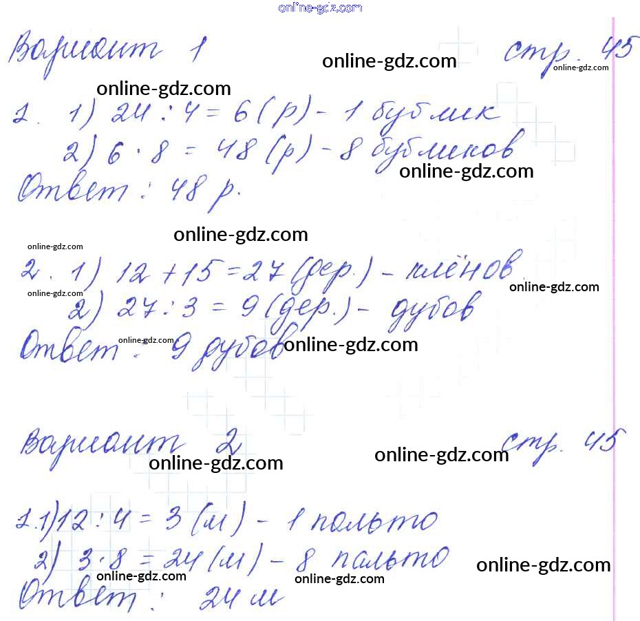 Готовые домашние задания по Математике за 3 класс Контрольные работы Рудницкая УМК 2017 - Часть 1 (страницы) 45