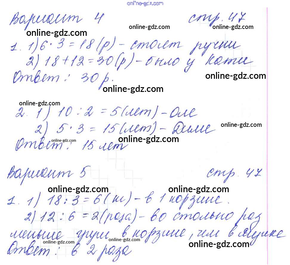 Готовые домашние задания по Математике за 3 класс Контрольные работы Рудницкая УМК 2017 - Часть 1 (страницы) 47