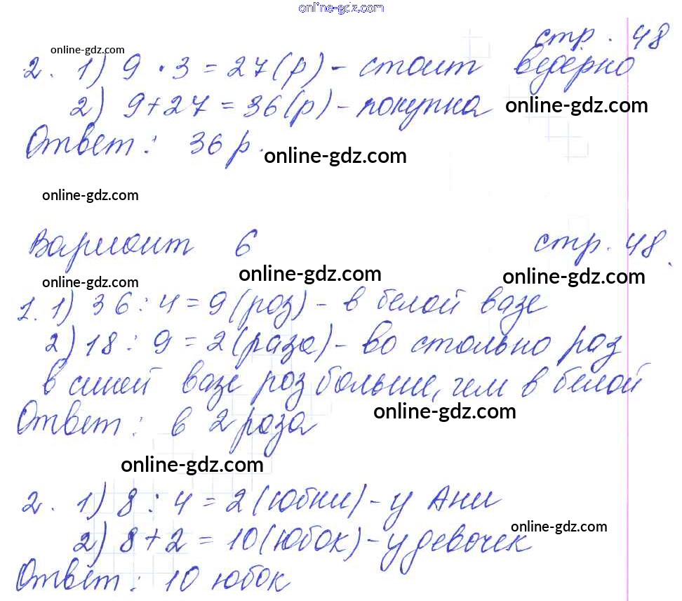 Готовые домашние задания по Математике за 3 класс Контрольные работы Рудницкая УМК 2017 - Часть 1 (страницы) 48