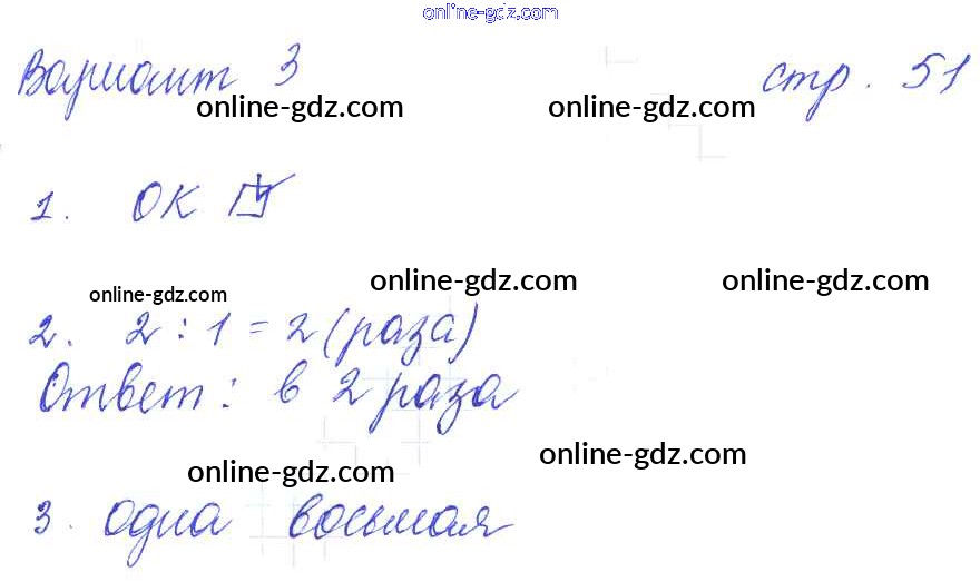 Готовые домашние задания по Математике за 3 класс Контрольные работы Рудницкая УМК 2017 - Часть 1 (страницы) 51