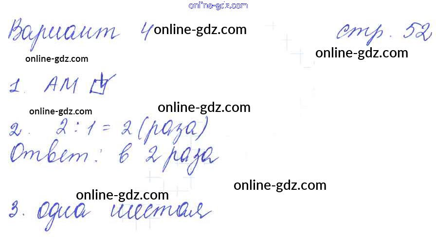 Готовые домашние задания по Математике за 3 класс Контрольные работы Рудницкая УМК 2017 - Часть 1 (страницы) 52