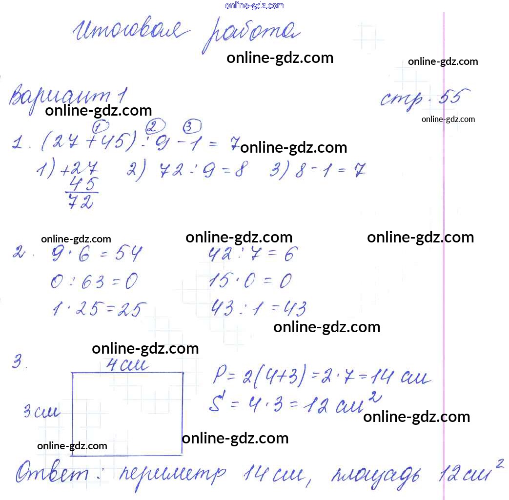Готовые домашние задания по Математике за 3 класс Контрольные работы Рудницкая УМК 2017 - Часть 1 (страницы) 55