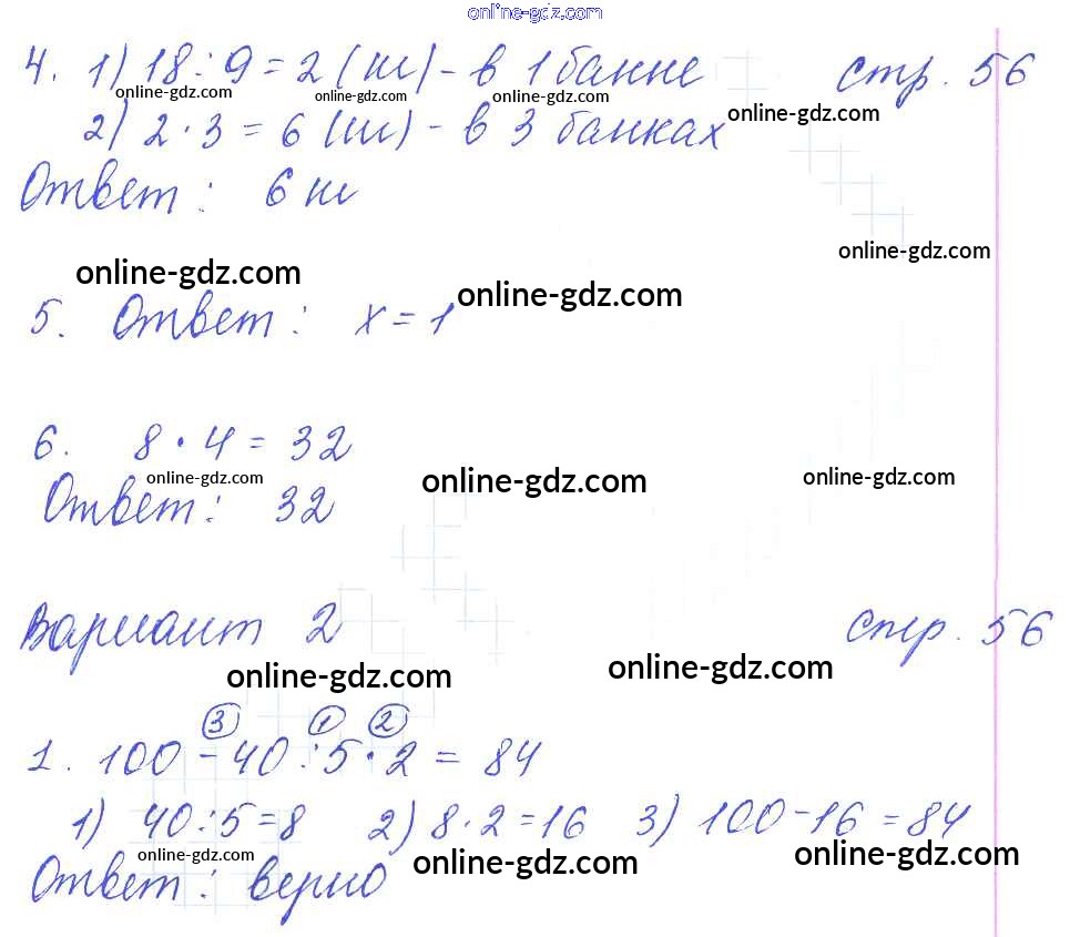 Готовые домашние задания по Математике за 3 класс Контрольные работы Рудницкая УМК 2017 - Часть 1 (страницы) 56