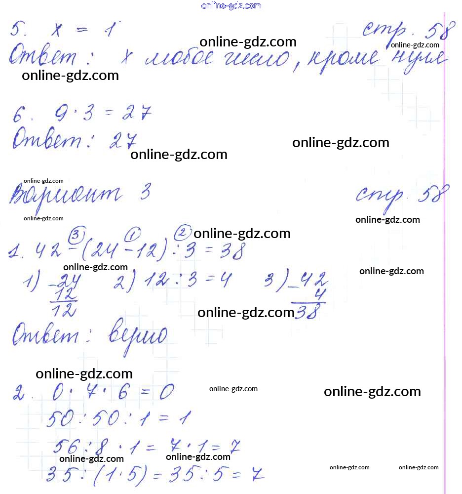 Готовые домашние задания по Математике за 3 класс Контрольные работы Рудницкая УМК 2017 - Часть 1 (страницы) 58