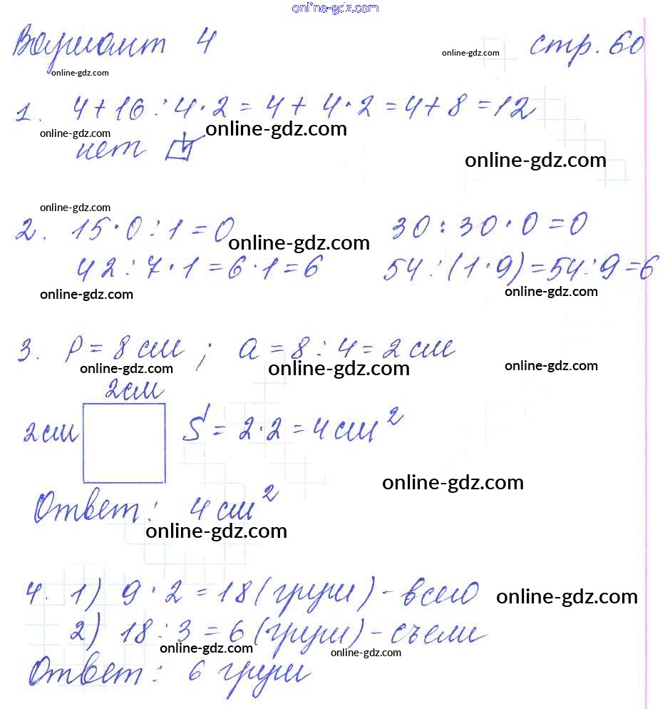 Готовые домашние задания по Математике за 3 класс Контрольные работы Рудницкая УМК 2017 - Часть 1 (страницы) 60