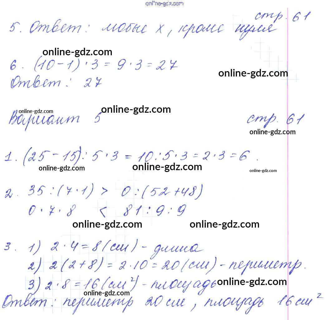 Готовые домашние задания по Математике за 3 класс Контрольные работы Рудницкая УМК 2017 - Часть 1 (страницы) 61