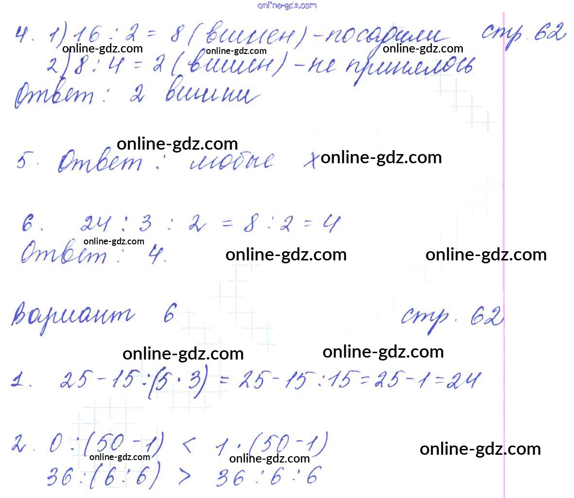 Готовые домашние задания по Математике за 3 класс Контрольные работы Рудницкая УМК 2017 - Часть 1 (страницы) 62