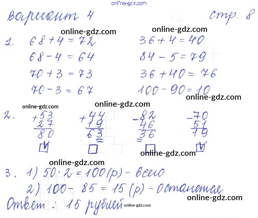 Готовые домашние задания по Математике за 3 класс Контрольные работы Рудницкая УМК 2017 - Часть 1 (страницы) 8
