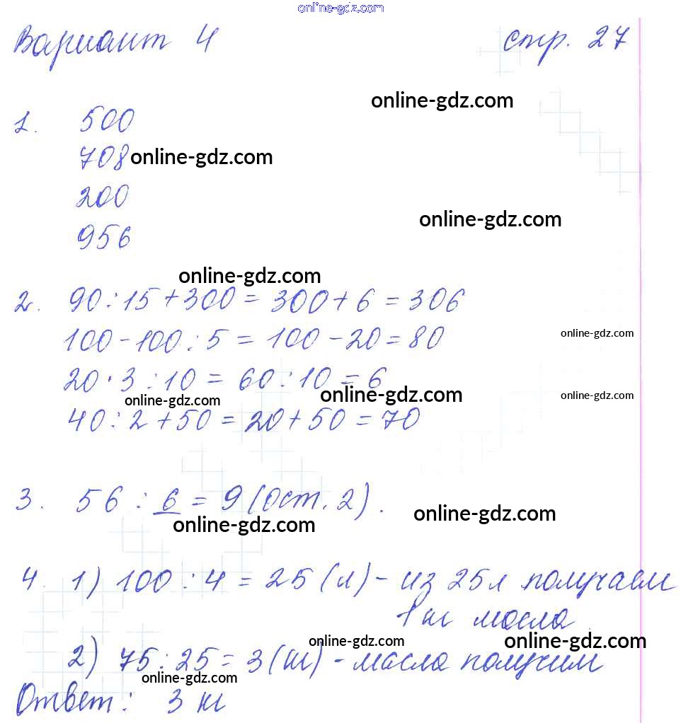 Готовые домашние задания по Математике за 3 класс Контрольные работы Рудницкая УМК 2017 - Часть 2 (страницы) 27