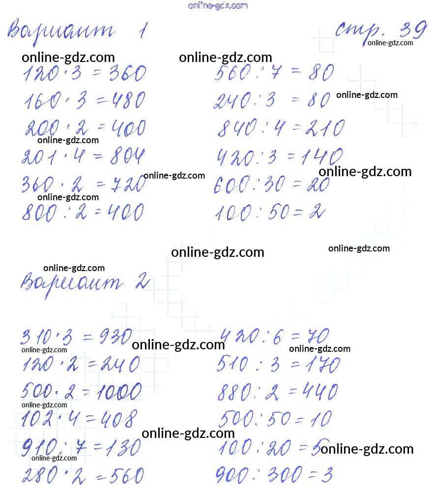 Готовые домашние задания по Математике за 3 класс Контрольные работы Рудницкая УМК 2017 - Часть 2 (страницы) 39