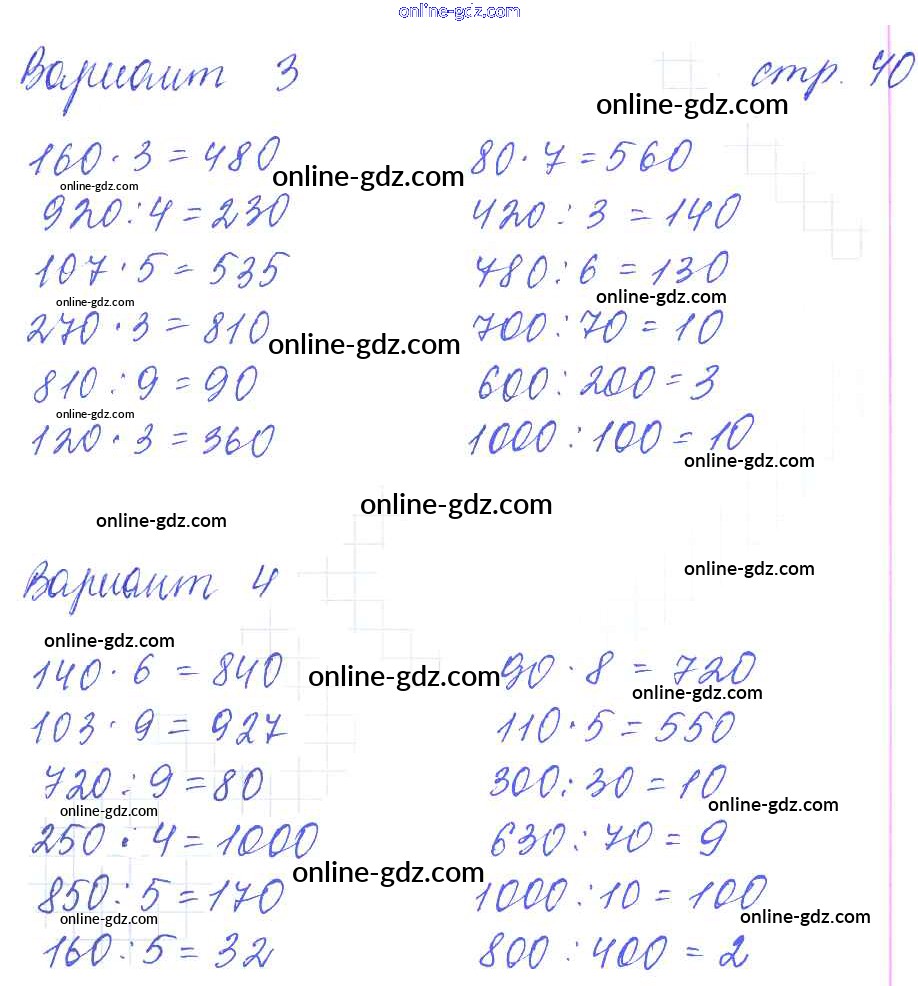 Готовые домашние задания по Математике за 3 класс Контрольные работы Рудницкая УМК 2017 - Часть 2 (страницы) 40