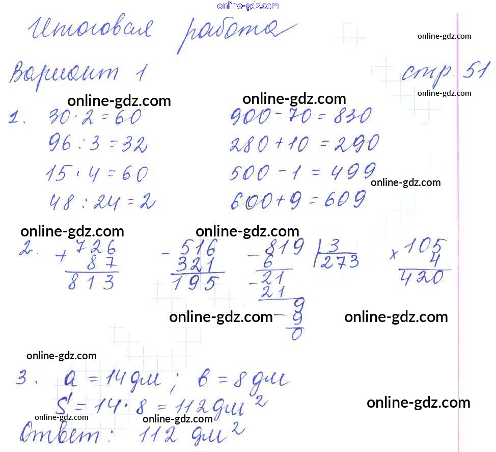 Готовые домашние задания по Математике за 3 класс Контрольные работы Рудницкая УМК 2017 - Часть 2 (страницы) 51