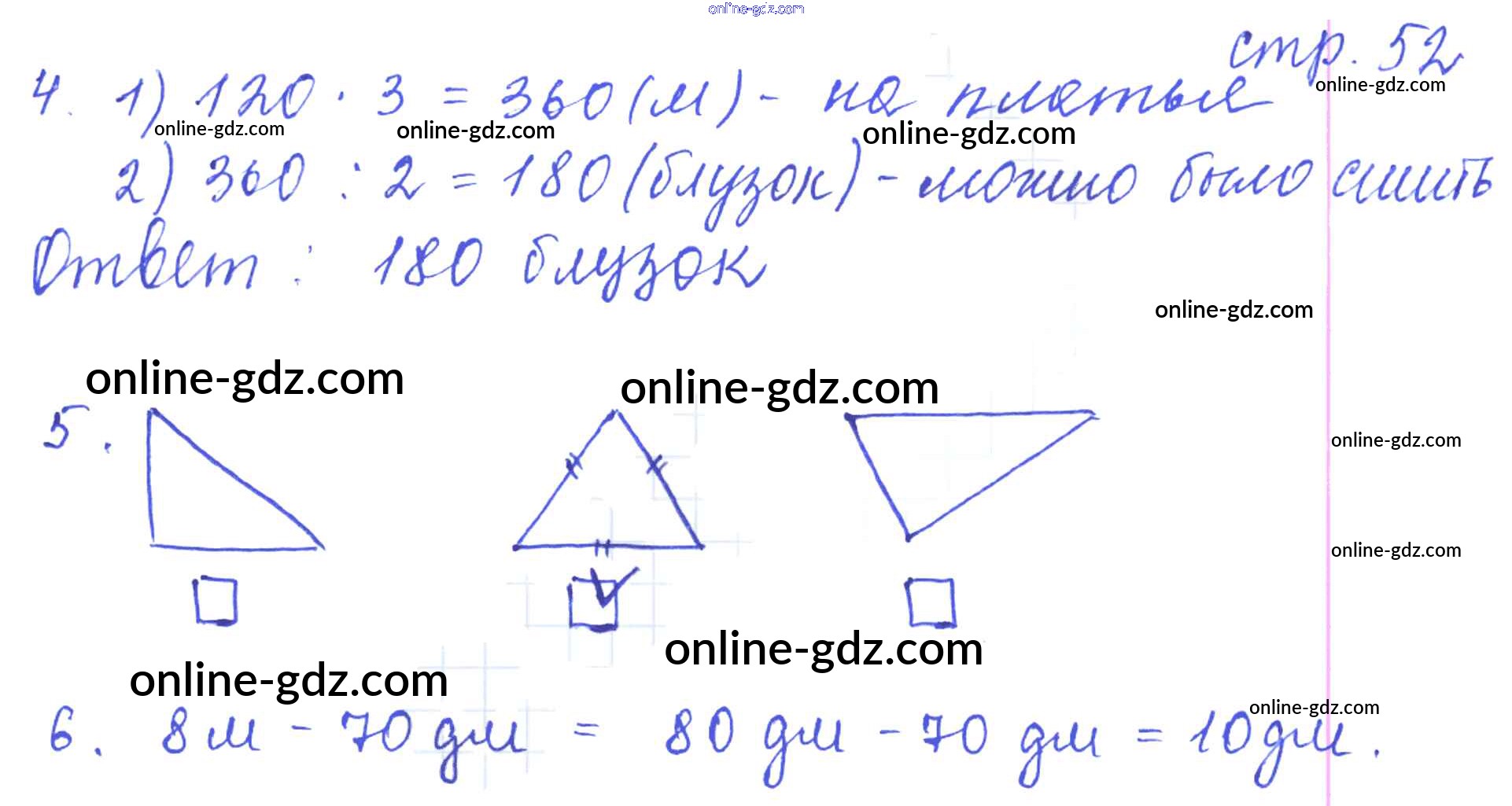 Готовые домашние задания по Математике за 3 класс Контрольные работы Рудницкая УМК 2017 - Часть 2 (страницы) 52