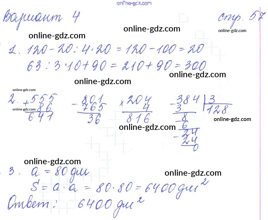 Готовые домашние задания по Математике за 3 класс Контрольные работы Рудницкая УМК 2017 - Часть 2 (страницы) 57