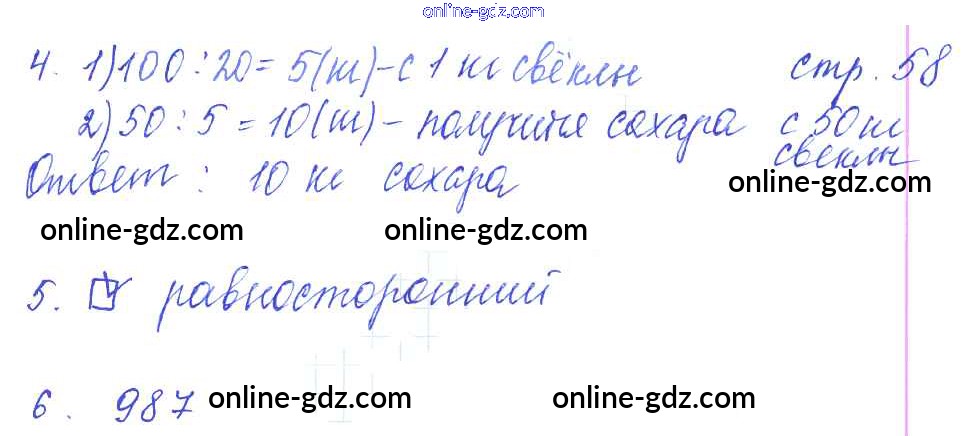 Готовые домашние задания по Математике за 3 класс Контрольные работы Рудницкая УМК 2017 - Часть 2 (страницы) 58