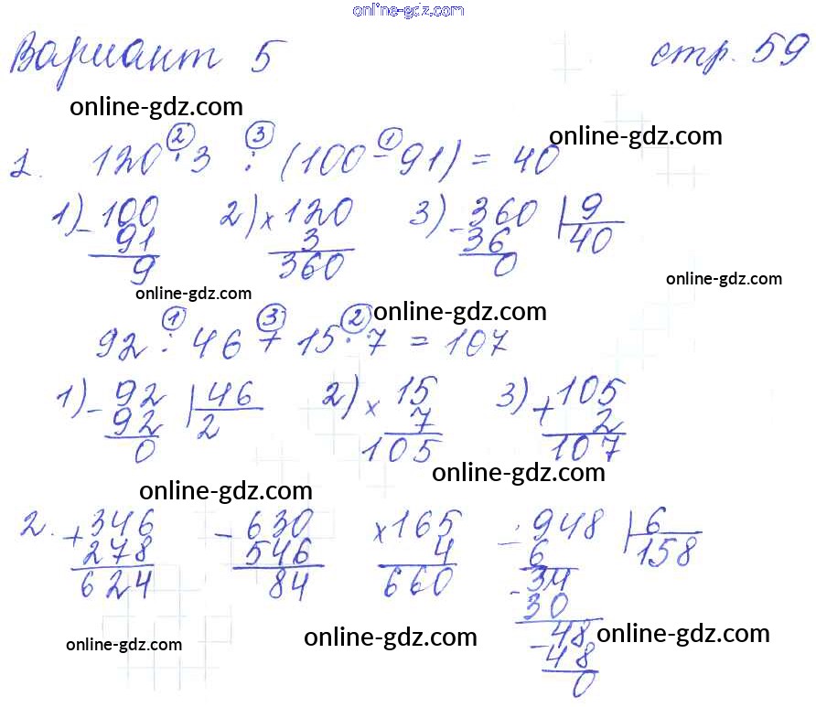Готовые домашние задания по Математике за 3 класс Контрольные работы Рудницкая УМК 2017 - Часть 2 (страницы) 59