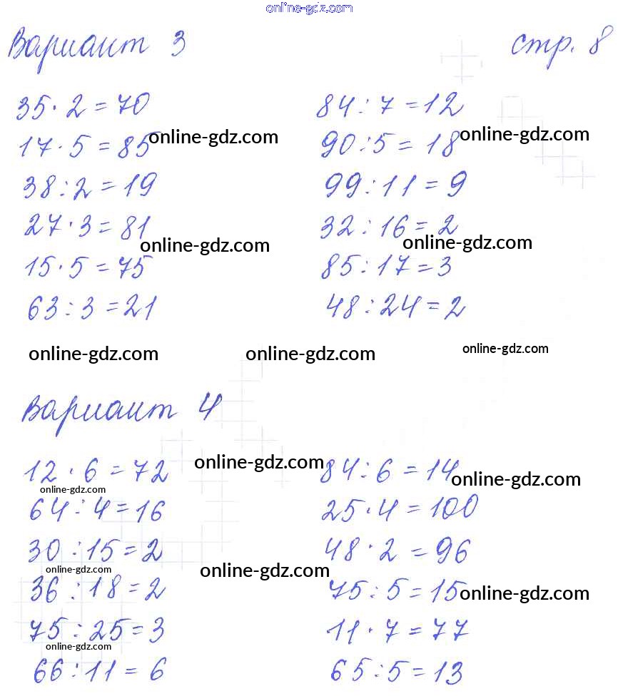 Готовые домашние задания по Математике за 3 класс Контрольные работы Рудницкая УМК 2017 - Часть 2 (страницы) 8