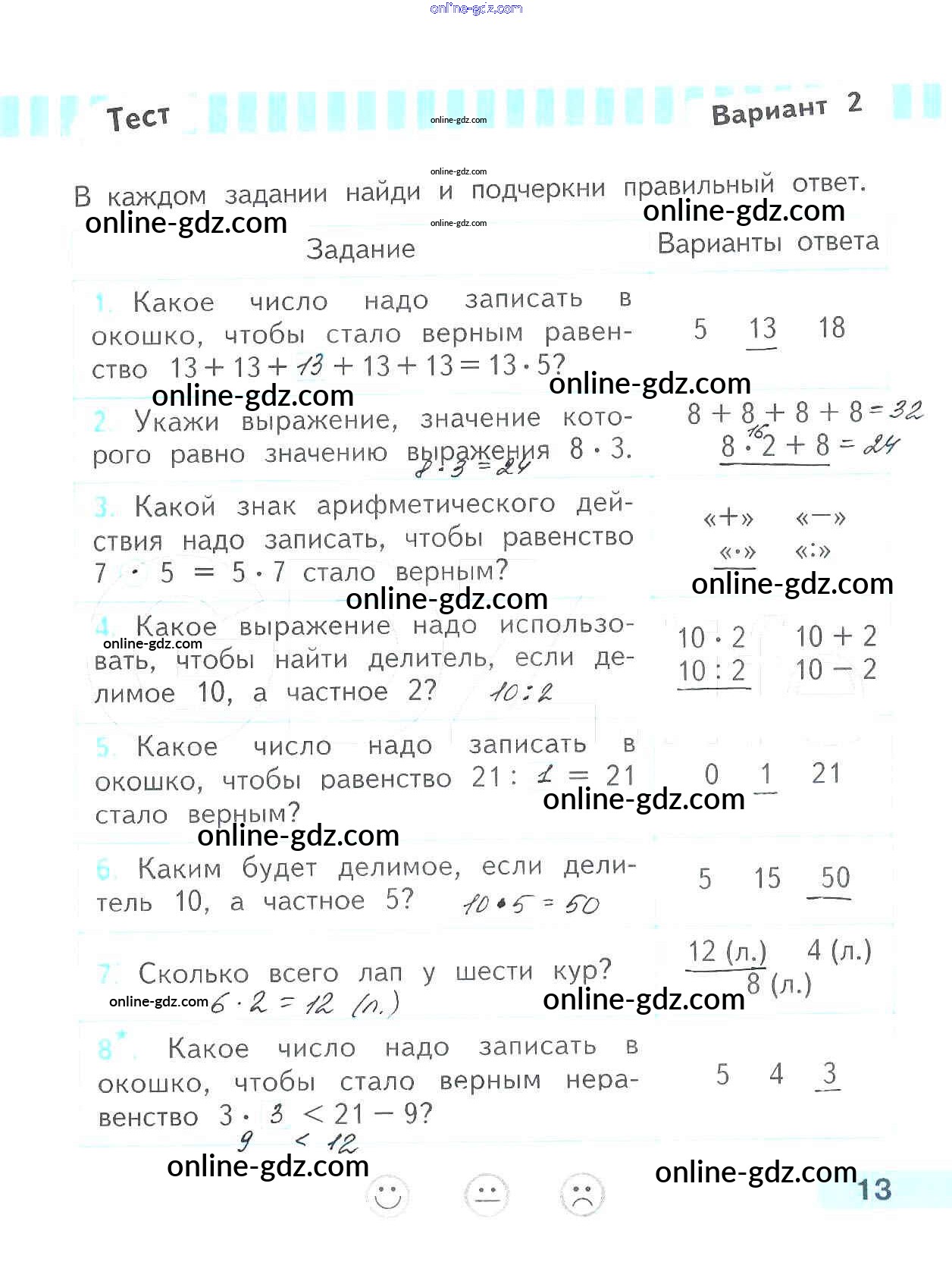 Готовые домашние задания по Математике за 3 класс Проверочные работы Волкова Школа России 2014 - Страницы 13