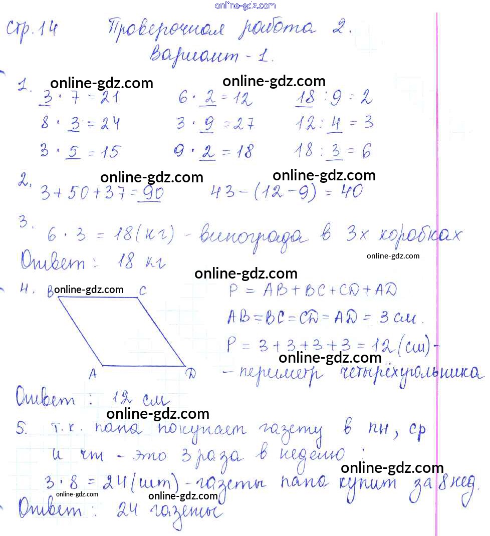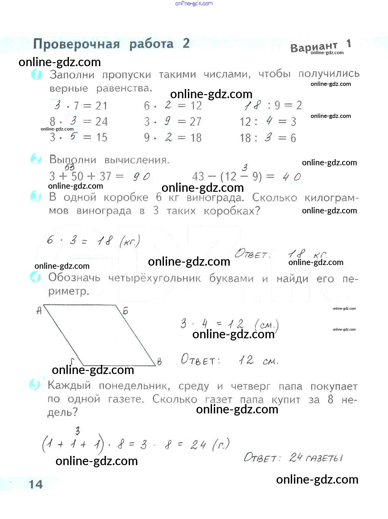 Готовые домашние задания по Математике за 3 класс Проверочные работы Волкова Школа России 2014 - Страницы 14