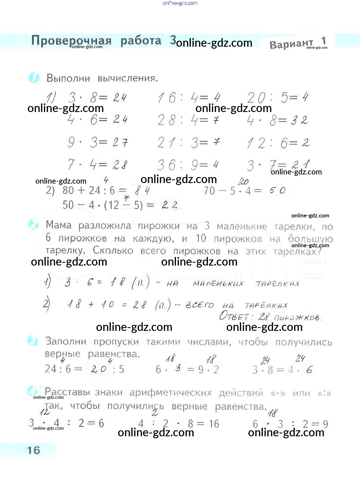 Готовые домашние задания по Математике за 3 класс Проверочные работы Волкова Школа России 2014 - Страницы 16