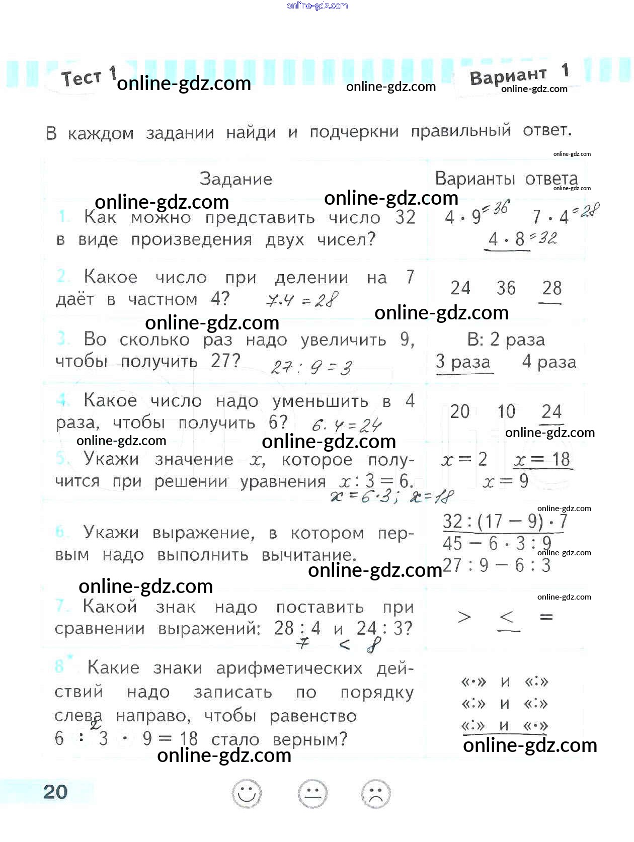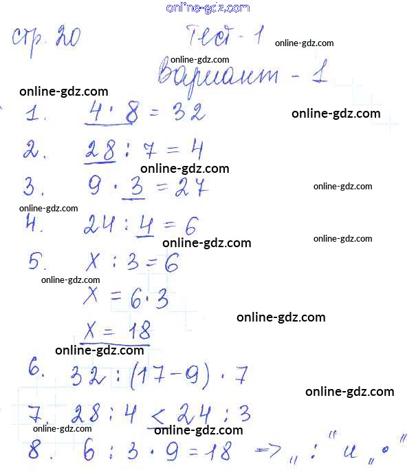 Готовые домашние задания по Математике за 3 класс Проверочные работы Волкова Школа России 2014 - Страницы 20