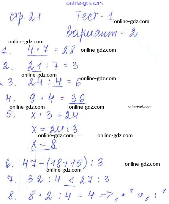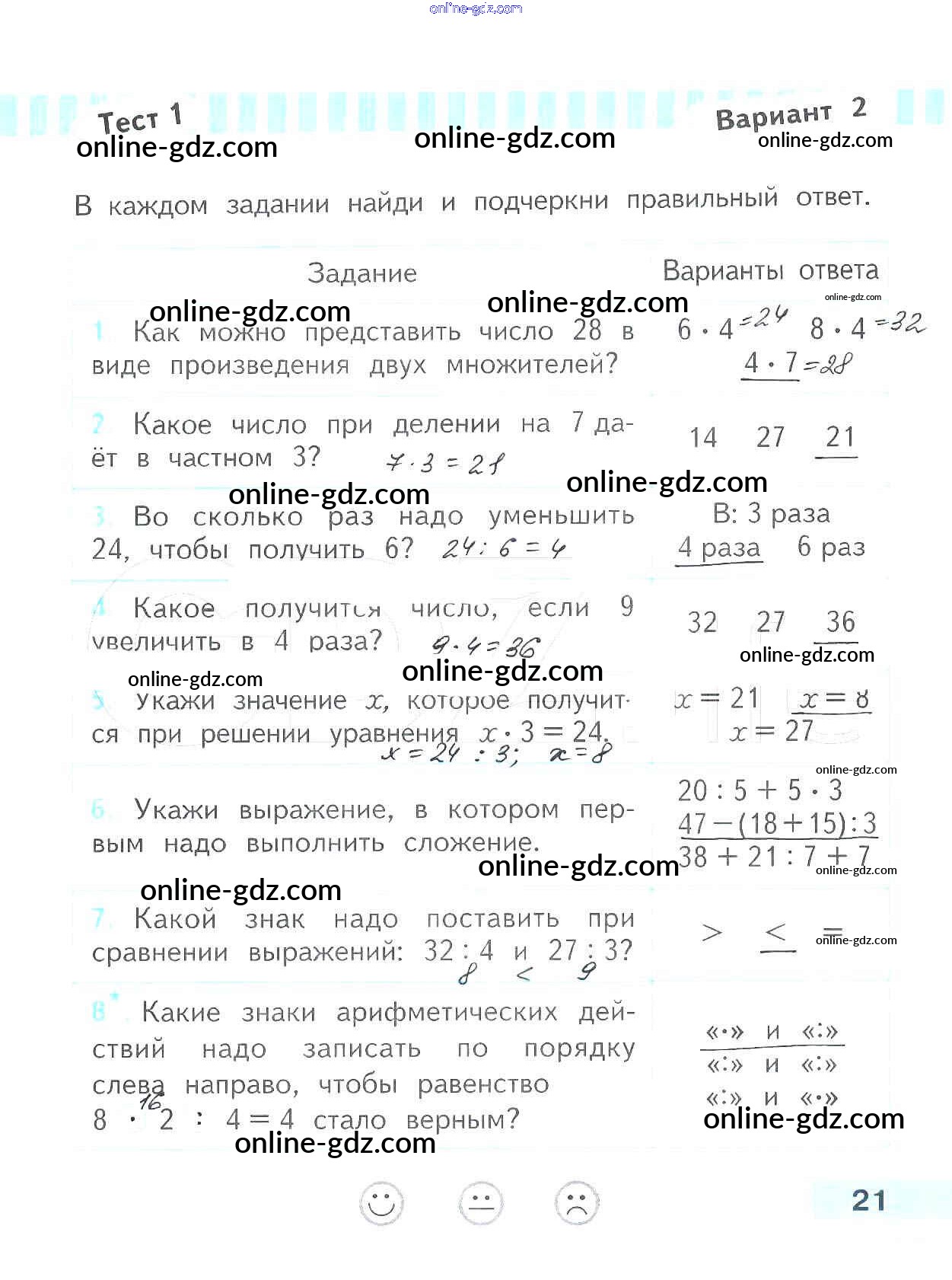 Готовые домашние задания по Математике за 3 класс Проверочные работы Волкова Школа России 2014 - Страницы 21