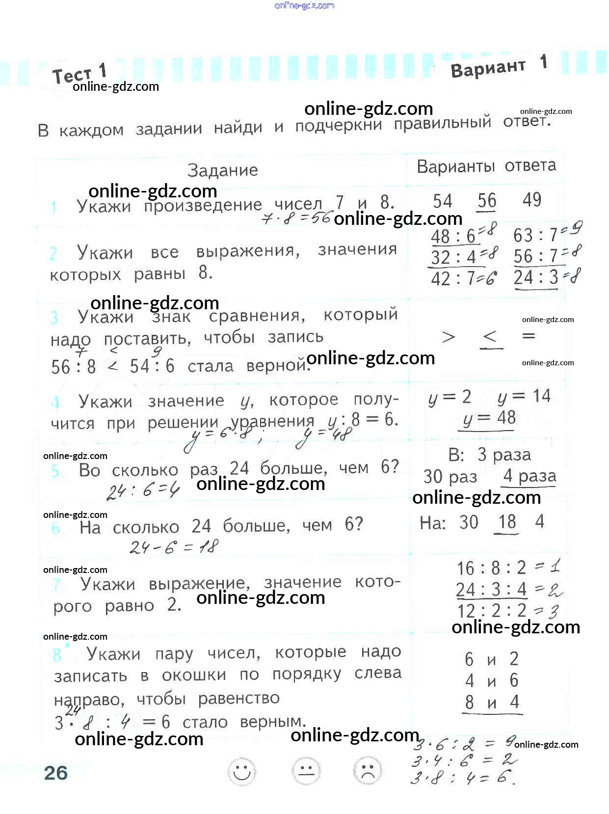 Готовые домашние задания по Математике за 3 класс Проверочные работы Волкова Школа России 2014 - Страницы 26