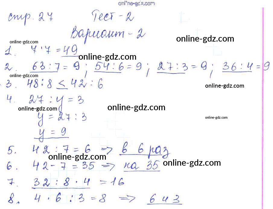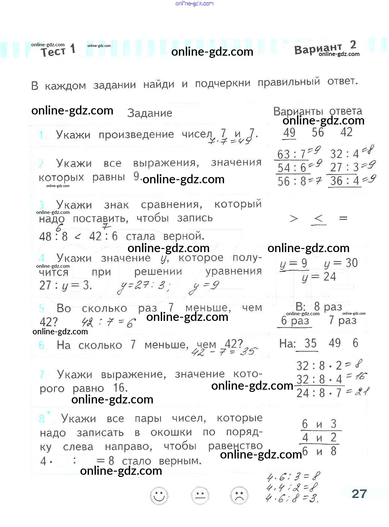 Готовые домашние задания по Математике за 3 класс Проверочные работы Волкова Школа России 2014 - Страницы 27