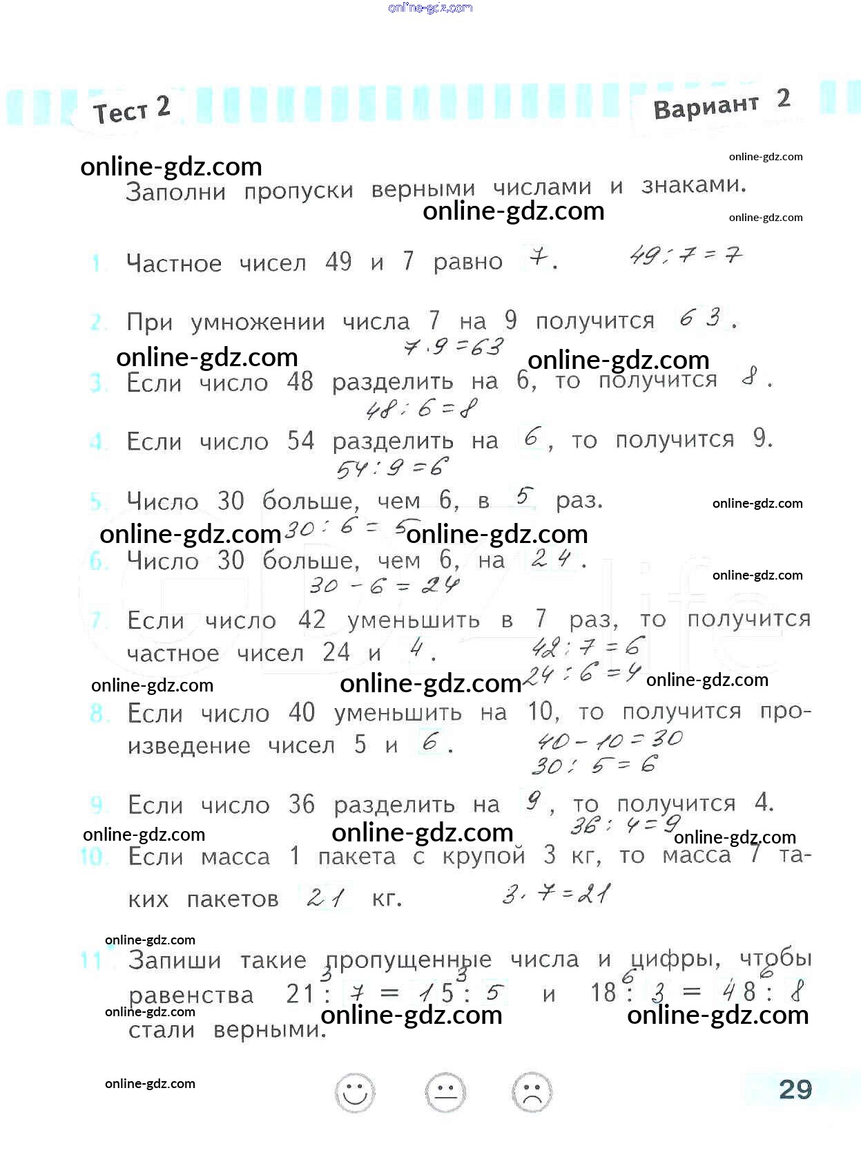 Готовые домашние задания по Математике за 3 класс Проверочные работы Волкова Школа России 2014 - Страницы 29
