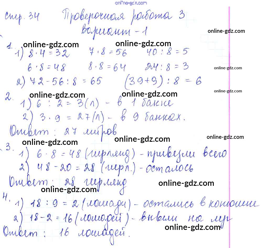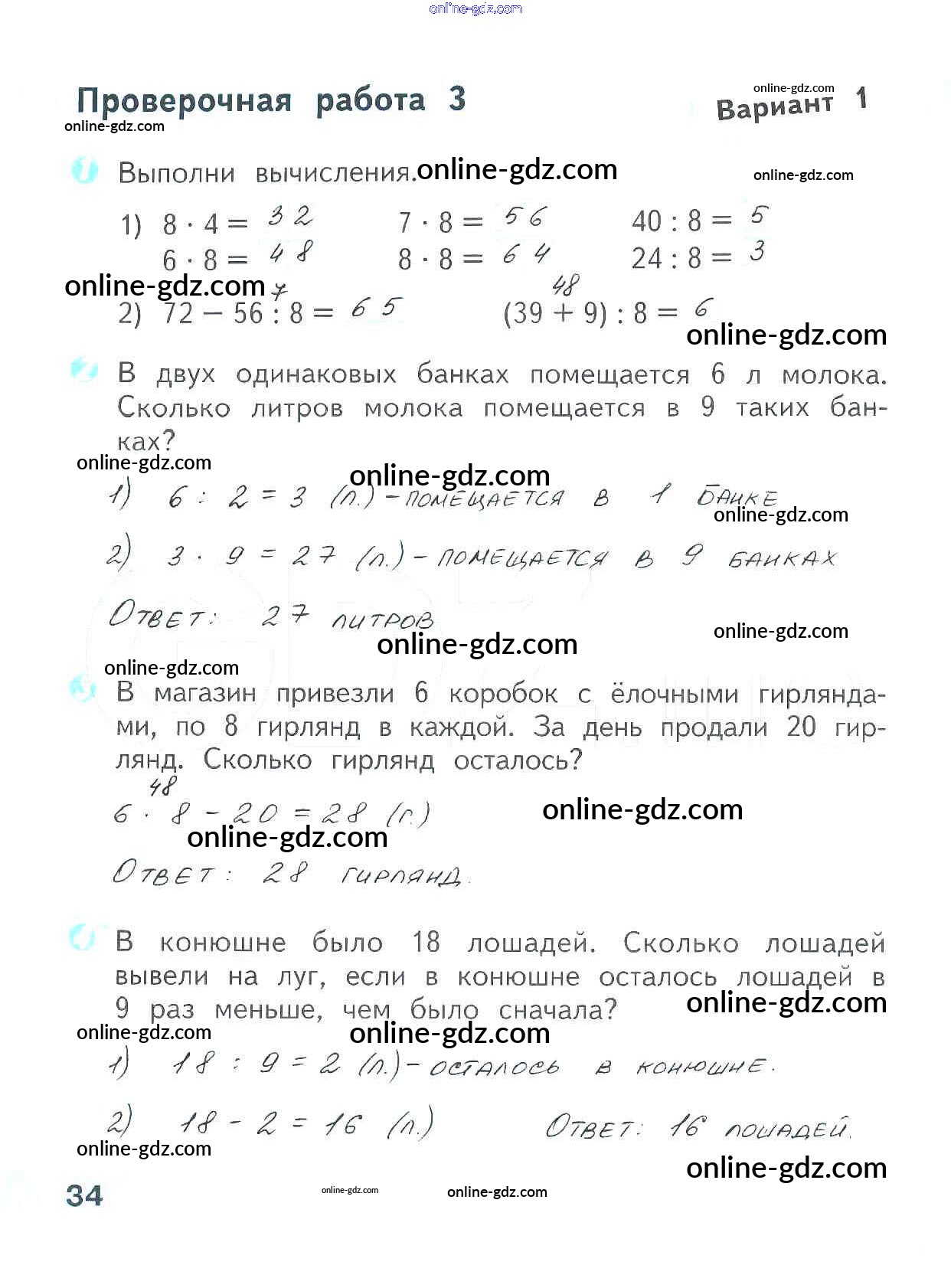 Готовые домашние задания по Математике за 3 класс Проверочные работы Волкова Школа России 2014 - Страницы 34