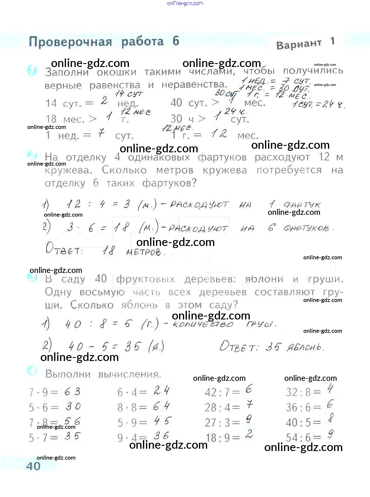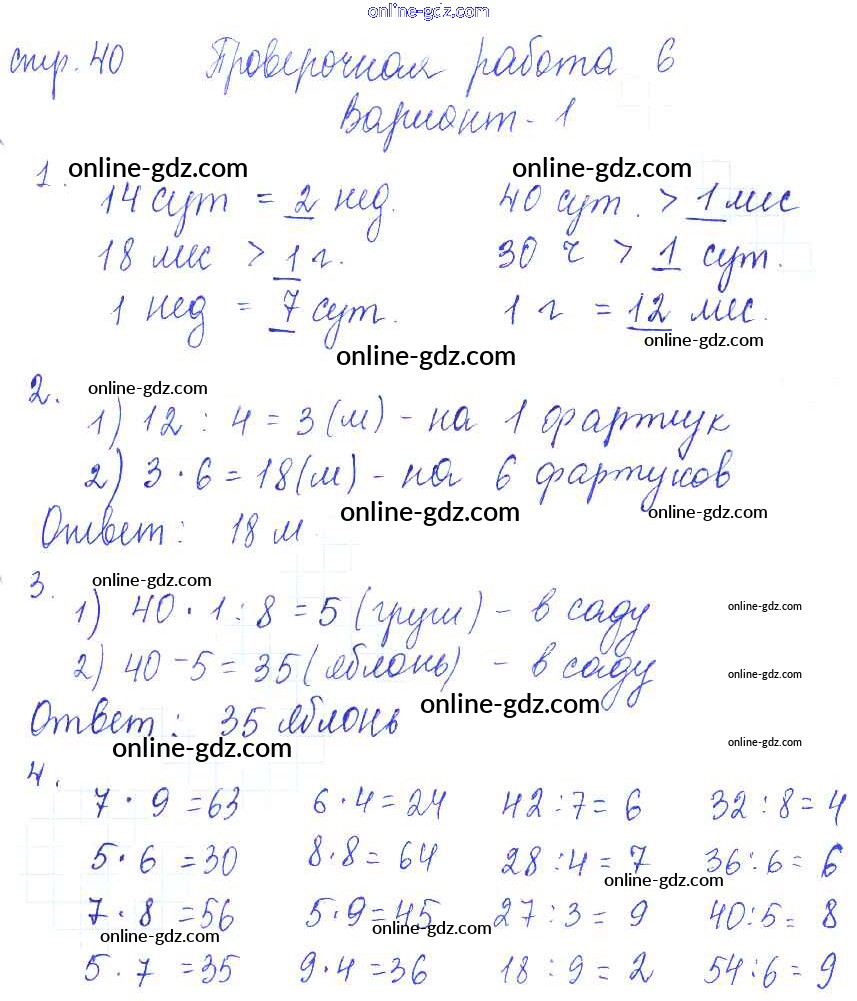 Готовые домашние задания по Математике за 3 класс Проверочные работы Волкова Школа России 2014 - Страницы 40